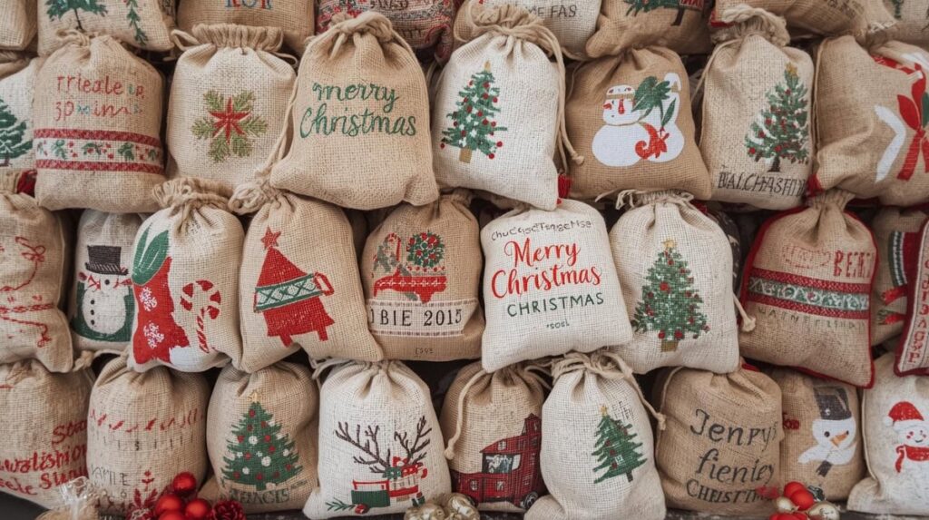 Jutesäckchen bringen einen rustikalen Charme in deine Weihnachtsdeko. Das grobe Material passt besonders gut zu einem natürlichen oder skandinavischen Einrichtungsstil. Die Säckchen gibt es in verschiedenen Größen und sie sind sehr robust.